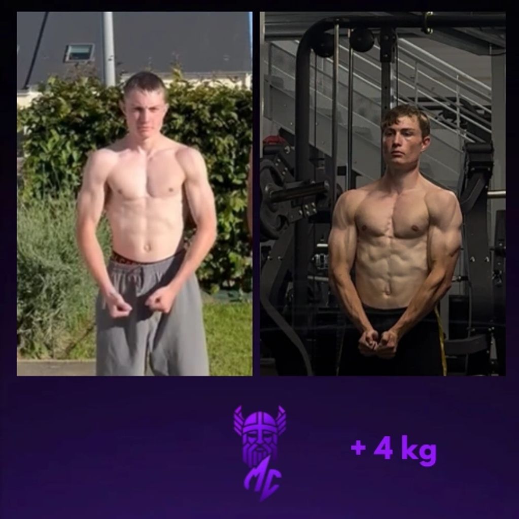 En 4 mois, Néo a pris +4 kg de muscle sans prendre de gras.