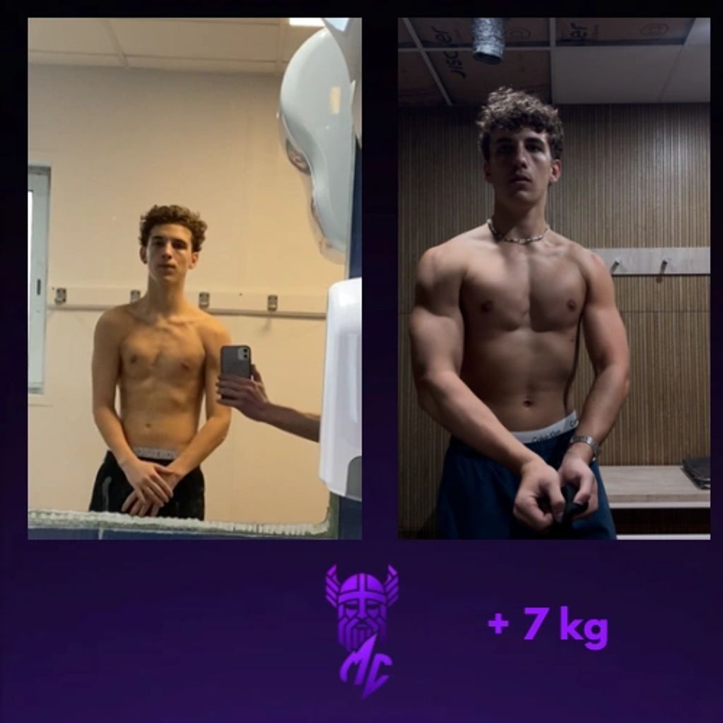 En seulement 1 an, Ethan a pris +7 kg de muscle grâce à un programme adapté, une alimentation maîtrisée et un suivi régulier.